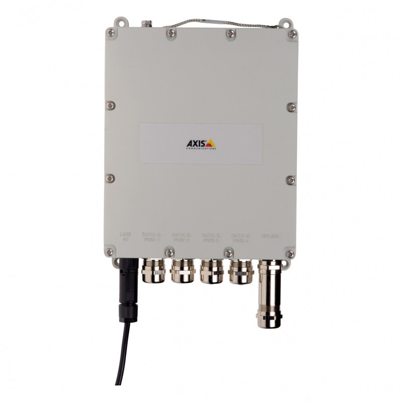 "Axis 01449-001. Switch type: Managed. Basic switching RJ-45 Ethernet ports type: Gigabit Ethernet (10/100/1000), Basic switching RJ-45 Ethernet ports quantity: 4. MAC address table: 8000 entries, Switching capacity: 20 Gbit/s. Networking standards: IEEE 802.1Q, IEEE 802.3af, IEEE 802.3at. Power connector: DC-in jack. Power over Ethernet (PoE)"\n"AXIS T8504-E Outdoor PoE Switch is an easy-to-install, compact outdoor switch enabling connection of four PoE-powered devices. The SFP port enables fiber connectivity for long distance connections, and remote management ensures easy maintenance, reducing support cost and customer down time. AXIS T8504-E is a robust system component with a wide temperature range, surge protection, and a dust and water-resistant enclosure which remains assembled during installation. With up to 60 W per port and a total power budget of 150 W, the switch is compatible with all Axis network devices."
