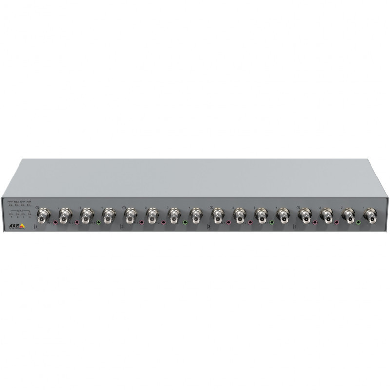 "Axis 02037-002. Maximum video resolution: 3840 x 2160 pixels, Maximum frame rate: 30 fps, Video compression formats: H.264, H.265. Fiber optic connector: SFP"\n"AXIS P7316 is a full-featured, 16-channel video encoder that adds IP benefits to any analog camera system. It supports standard and HD analog cameras up to 4K resolution as well as PTZ control over RS485. This rack-mounted encoder features support for two-way audio and intelligent analytics such as motion detection and active tampering alarm. An SFP slot enables long-distance fiber-optic connection and network redundancy. AXIS P7316 includes Zipstream with support for H.264/H.265 to drastically reduce bandwidth and storage requirements. Furthermore, it offers built-in cybersecurity features such as signed firmware and secure boot."