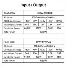 AZZA PSU 650W ATX 3.1 80+ Bronze Certified, Silent 120mm fan, 1x 20+4pin, 1 x 4+4pin 12V, 1 x PCI-E 5.1 12+4, x 6+2Pin PCI-E, 2 x 4pin Molex, 6 x Sata, PSAZ-650B (PCI-e 5.1)