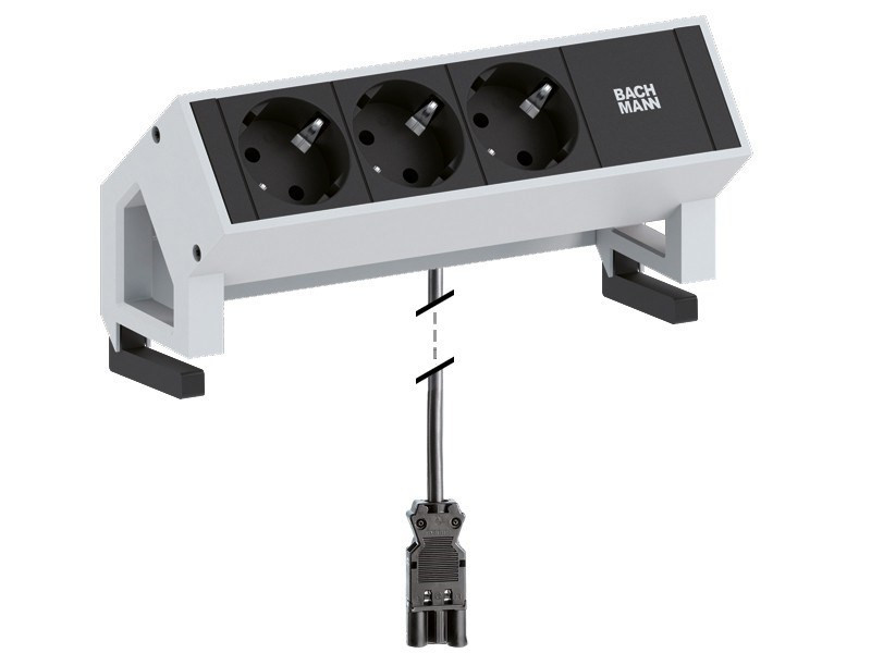 Bachmann Desk2 šakutės lizdas 3 x Type F Juoda, Nerūdijančiojo plieno