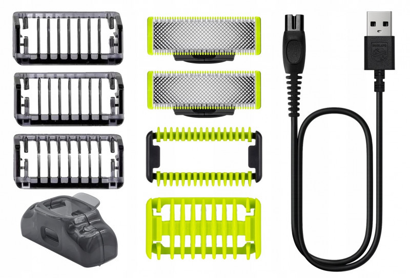 Philips Norelco OneBlade QP2824/10 skustuvas vyrams Apkarpymo mašinėlė Pilka, Gelsvai žalsva spalva