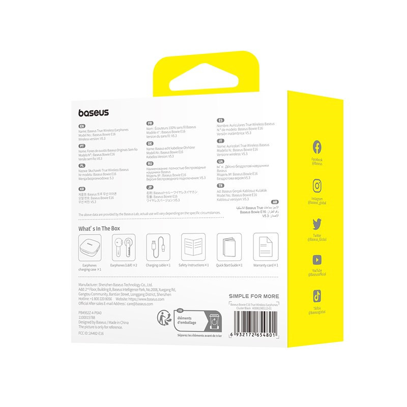 Baseus Bowie E16 Laisvų rankų įranga True Wireless Earphones Įkišamos į ausį Skambučiai / muzika C tipo USB Bluetooth Juoda