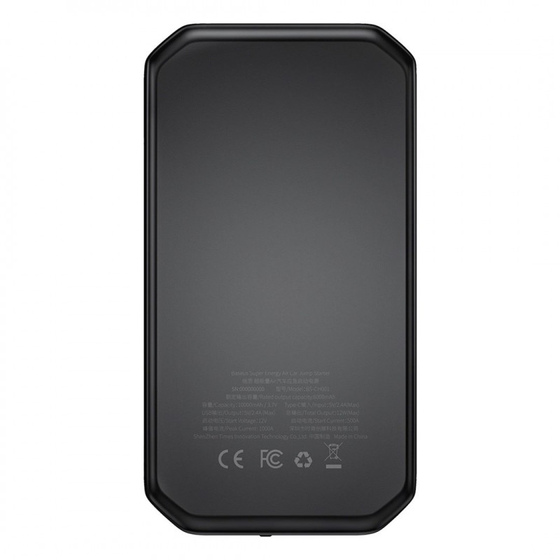 Baseus BS-CH001 - paleidimo įrenginys, stiprintuvas 10000 mAh 12 V (1000 A / 500 A) + krokodilo spaustukai (juodi)