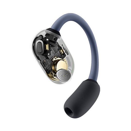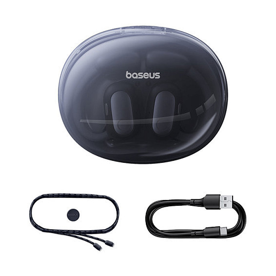 "Baseus Eli Sport 1. Product type: Headset. Connectivity technology: Wireless, Bluetooth. Recommended usage: Calls/Music. Wireless range: 10 m. Weight: 84 g. Product colour: Black"\n"Baseus first-ever open-air TWS Earbuds with a guided air conduction driver make you enjoy your playlist in a fresh, painless, and comfortable fashion without pushing the earbud into the ear canal. Features such as the fluorescent ear hooks and the innovative dual-wearing modes remove all anxieties from your audio-listening experience."