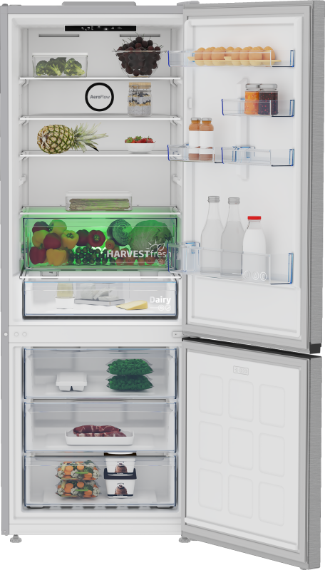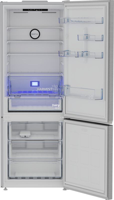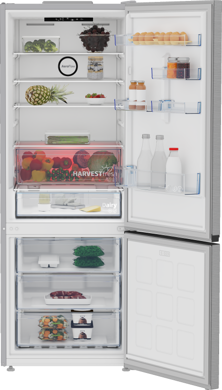 BEKO Refrigerator | B3RCNE564HXB | Energy efficiency class E | Free standing | Combi | Height 192 cm | No Frost system | Fridge net capacity 340 L | Freezer net capacity 150 L | Display | 39 dB | Stainless steel