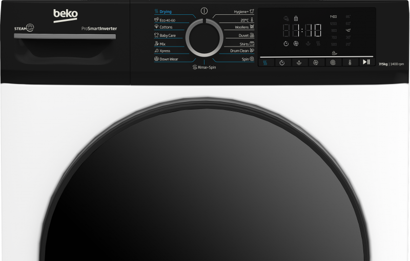 BEKO Washing machine with dryer | BMM5DFO5741WPB | Energy efficiency class A/D | Front loading | Washing capacity 7 kg | 1400 RPM | Depth 52 cm | Width 60 cm | Display | LED | Drying system | Drying capacity 5 kg | Steam function | White