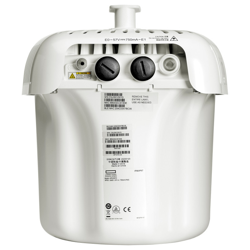 "HPE Aruba Networking AP-575 (RW) 802.11ax 2x2/4x4 Dual Radio Integrated Omni Antennas Outdoor AP. 2.4 GHz, 5 GHz, Maximum data transfer rate: 5375 Mbit/s. Security algorithms: WPA, WPA2, WPA3. Ethernet LAN data rates: 10,100,1000,2500 Mbit/s. Power over Ethernet (PoE). Product colour: White. Power consumption (max): 32 W"\n"The HPE Aruba Networking 570 Series Outdoor Access Points provide high-performance Wi-Fi 6 wireless connectivity for harsh outdoor weather conditions such as parking lots, stadiums, and public venues. With Wi-Fi 6 capabilities, Bluetooth 5 and 802.15.4/Zigbee radios, and a maximum aggregate data rate of 2.69 Gbps, the 570 series delivers the speed and reliability needed to bring Wi-Fi 6 outdoors. These Wi-Fi 6 outdoor access points are ready to survive high wind, extreme temperatures, and moisture and can be quickly deployed using zero touch provisioning. HPE Aruba Networking Central provides a single pane of glass for overseeing wired and wireless LANs, WANs, and VPNs. AI‑powered analytics, end‑to‑end orchestration and automation, and advanced security features are built natively into the solution. The 570 series include a limited lifetime warranty.