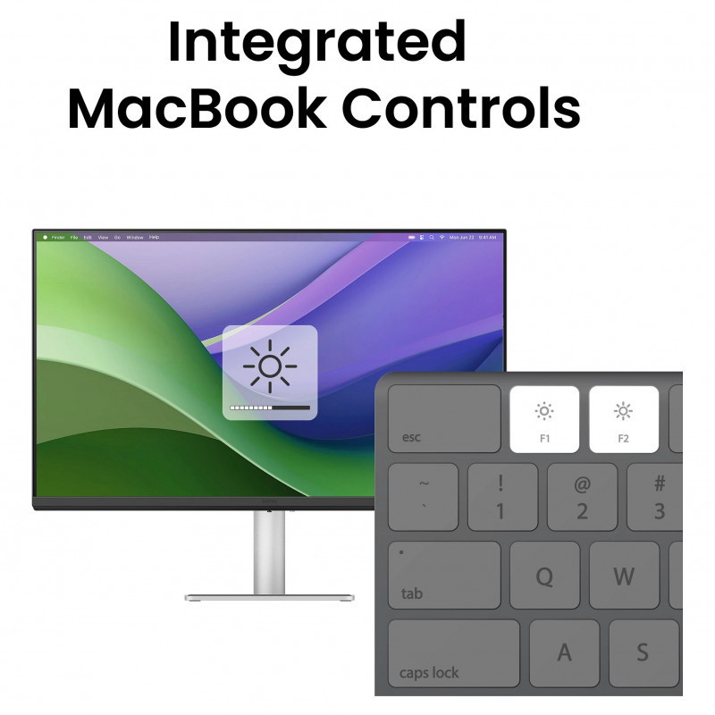 Now you can synchronize controls between your MacBook computer and monitor with simple keystrokes, just like you would on your MacBook Pro and MacBook Air. Simply press the brightness or volume key, and both displays will adjust simultaneously.
