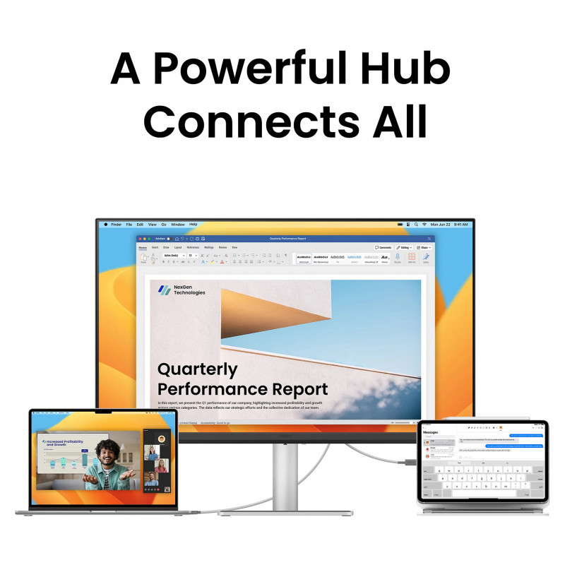 More than a stylish external monitor for your MacBook Pro and MacBook Air computer, it’s also a powerful hub for your desktop Apple ecosystem. The built-in 90W and 15W USB-C ports* charge your iPad and iPhone devices while you work.