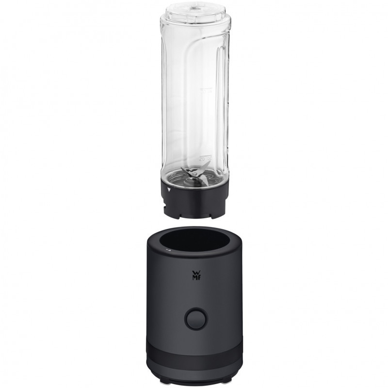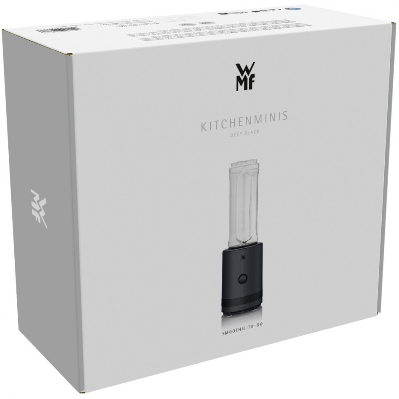 "WMF KITCHENminis 0416500071. Type: Sport blender, Product colour: Black. Bowl capacity: 0.6 L, Rotational speed (max): 23000 RPM. Blending bowl material: Tritan. Power: 300 W, Power source: AC. Width: 150 mm, Depth: 110 mm, Height: 350 mm"\n