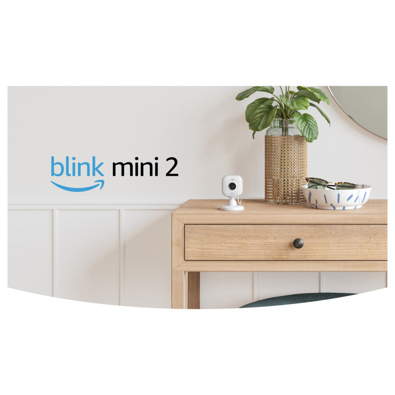 "Amazon Blink Mini 2. Type: IP security camera, Placement supported: Indoor & outdoor, Connectivity technology: Wireless. Mounting type: Desk/Wall, Product colour: White, Form factor: Cube. Lens viewing angle, diagonal: 143°. LED type: IR. Total megapixels: 2 MP, Supported video modes: 1080p, Frame rate: 30 fps"\n