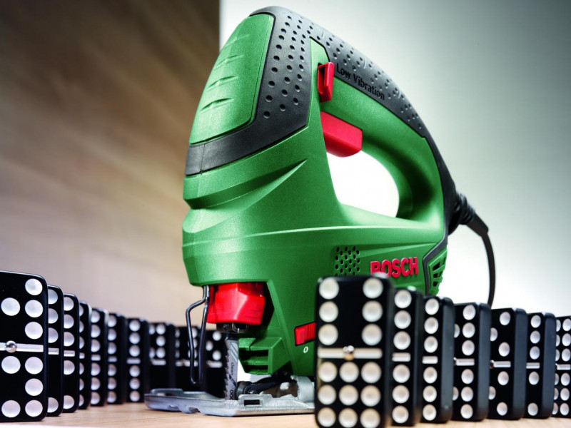 As easy as can be: compact size, low weight and outstanding handling ensure perfect control and optimum user comfort;Minimal vibration and safe, comfortable work due to Bosch “Low Vibration” with linear mass balance and ergonomic softgrip;Powerful 500 W motor and 65 mm cutting depth in wood – making even hard jobs easy;Switchable dust blowing function ensures a clear view of the cutting line at all times;Bosch SDS ensures effortless and safe saw blade changes within seconds – without the need for additional tools;Improved and enlarged metal base plate for safe and secure handling – adjustment of the base plate for mitre cuts up to 45°;Dust extraction port – for dust-free working;New cable guide with hanging hook for practical storage |