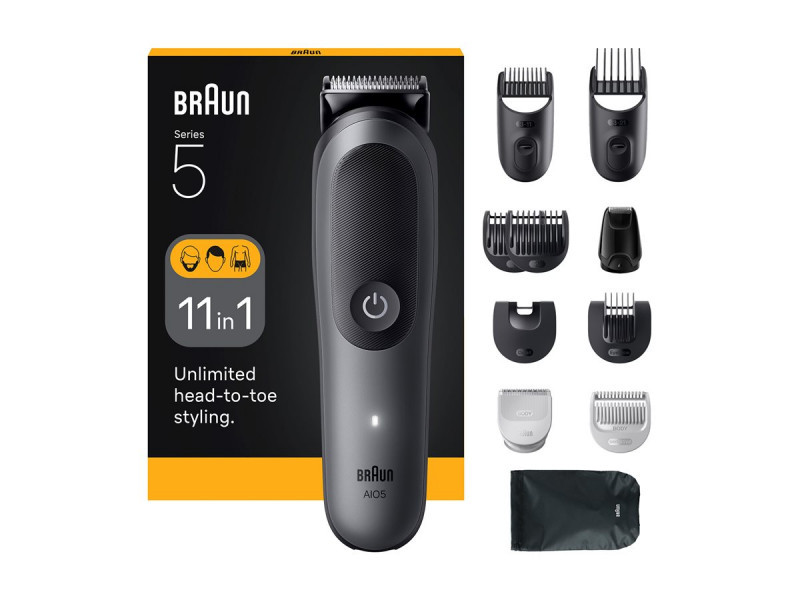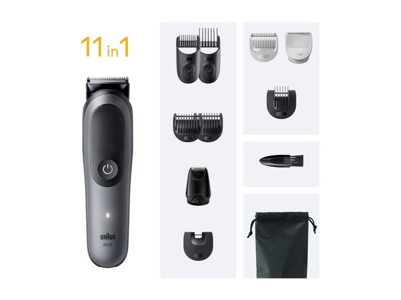Braun 11-in-1 Grooming Kit | All-in-One Kit Series 5 AIO5560 | Cordless | Number of length steps 14 | Grey/Black