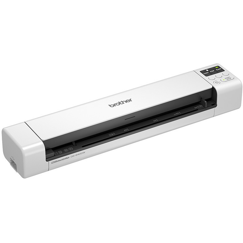 "Brother DS-940DW. Maximum scan size: 215.9 x 1828.8 mm, Optical scanning resolution: 600 x 600 DPI, Enhanced scan resolution: 1200 x 1200 DPI. Scanner type: Sheet-fed scanner, Product colour: Black, White. Scan to: E-mail, File, Image, Memory card, OCR, Scan drivers: ICA, SANE, TWAIN, WIA, Scanning noise level: 53 dB. Standard input capacity: 1 sheets. Maximum ISO A-series paper size: A4, Scanning media types supported: Business Card, Plain paper, Plastic Card, Card thickness (max): 1.24 mm"\n"The DSmobile DS-940DW is engineered to be truly flexible. Featuring a built-in battery, Wi-Fi and intuitive LCD panel, setup is effortless. Digitising your files whether in the office where space is limited or out on the road is simple. Scan your documents straight to the cloud using Brother's mobile app and easily share your documents with colleagues wherever you are. Your information is kept safe, effortless to find and more convenient to edit. With a unique ""U-path"" roller system, you are not required to have extra space behind the scanner for the document to feed-through. As the document goes in, it glides over the top of the scanner and is returned to you."