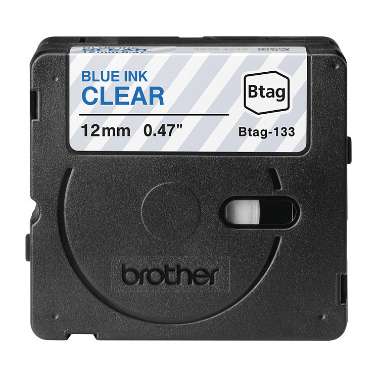 "Brother BTAG-133. Label colour: Blue on transparent, Country of origin: Philippines, Spare part retention: 5 year(s). Tape width: 1.2 cm, Tape length: 4 m, Width: 45 mm. Pallet gross height: 13.1 cm, Master (outer) cases per pallet: 136 pc(s), Layers per pallet: 8 pc(s)"\n"Brother original Btag-133 Blue on Clear 12mm tape is perfect for all-round home organisation. Create labels to organise items in the kitchen, bedroom storage, home office and personal items, as well as children’s school books and stationery.Btag tape is durable and offers resistance to many of the conditions present during everyday use in the home. Btag labels are microwave, freezer, dishwasher, household liquids and water resistant, meaning they’ll remain intact and legible over time."
