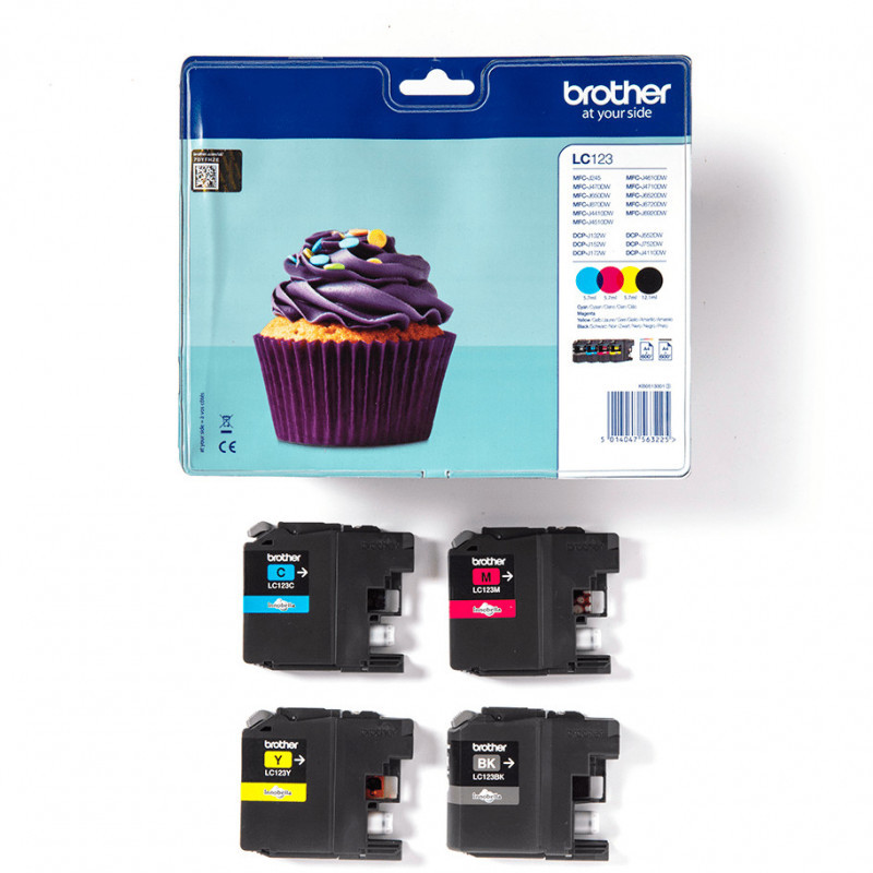"Brother LC123VALBPDR. Supply type: Multi pack, Colour ink page yield: 600 pages, Printing colours: Black, Cyan, Magenta, Yellow, Quantity per pack: 1 pc(s), Black ink page yield: 600 pages"\n