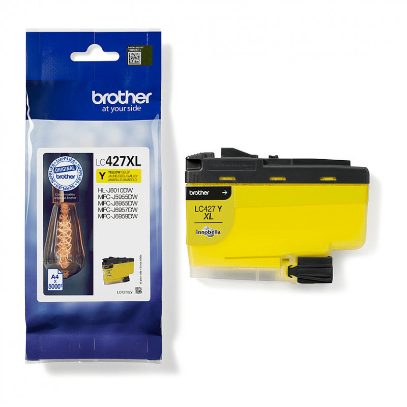 "Brother LC-427XLY. Colour ink type: Pigment-based ink, Cartridge capacity: High (XL) Yield, Supply type: Single pack, Colour ink page yield: 5000 pages, Printing colours: Yellow, Quantity per pack: 1 pc(s)"\n"Looking for a cartridge that offers effortless performance every time you print? The Brother high yield yellow LC427XLY Ink Cartridge, with colour fade resistant properties guarantees smooth, reliable and top quality printouts from your first to your last print. Our perfectly balanced inks ensure your printer stays working at its best.