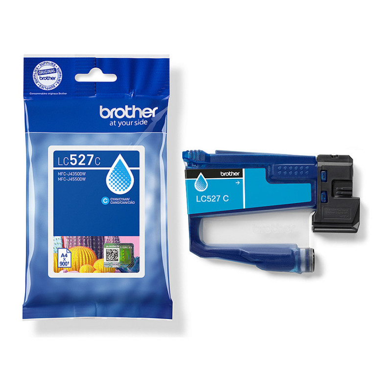 "Brother Genuine LC527C Ink Cartridge - Cyan. Colour ink type: Pigment-based ink, Supply type: Single pack, Colour ink page yield: 900 pages, Printing colours: Cyan, Quantity per pack: 1 pc(s)"\n"High quality supplies are essential for achieving outstanding print results. The Brother LC527C cyan premium pigment ink cartridge is formulated to produce vibrant colour and sharp text. Whether you are printing images, presentations, or documents it enhances overall print quality.