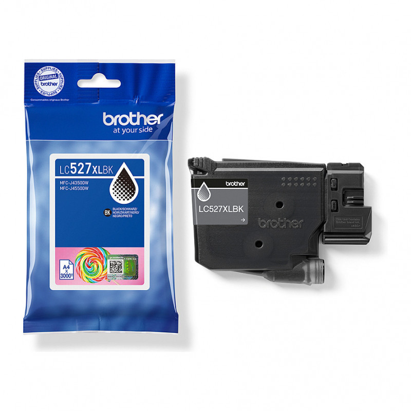 "Brother Genuine LC527XLBK High Yield Ink Cartridge - Black. Black ink type: Pigment-based ink, Cartridge capacity: High (XL) Yield, Supply type: Single pack, Printing colours: Black, Quantity per pack: 1 pc(s), Black ink page yield: 3000 pages"\n"High quality supplies are essential for achieving outstanding print results. The Brother LC527XLBK high yield black premium pigment ink cartridge is formulated to deliver exceptional sharp text quality when printing documents.