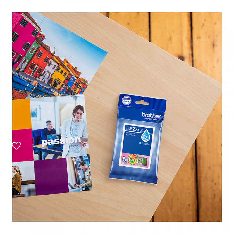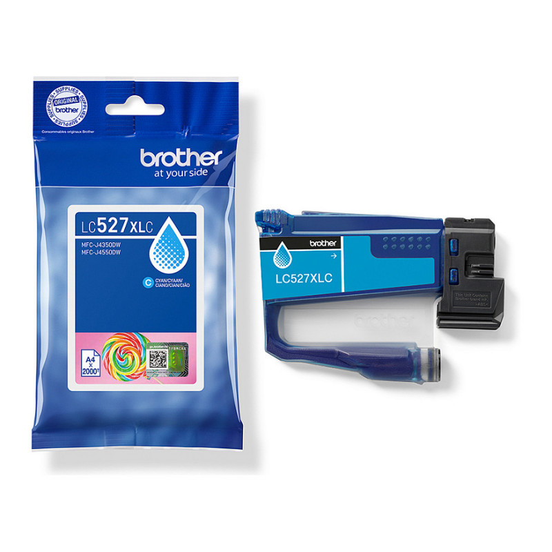 "Brother Genuine LC527XLC High Yield Ink Cartridge - Cyan. Colour ink type: Pigment-based ink, Cartridge capacity: High (XL) Yield, Supply type: Single pack, Colour ink page yield: 2000 pages, Printing colours: Cyan, Quantity per pack: 1 pc(s)"\n"High quality supplies are essential for achieving outstanding print results. The Brother LC527XLC cyan high yield premium pigment ink cartridge is formulated to produce vibrant colour and sharp text. Whether you are printing images, presentations, or documents it enhances overall print quality.