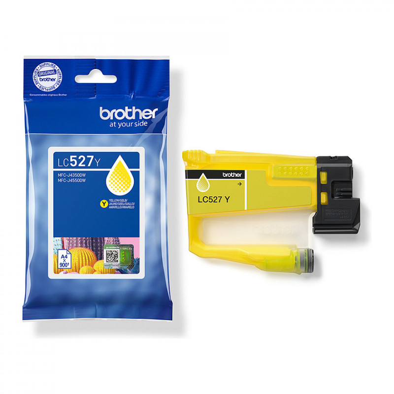 "Brother Genuine LC527Y Ink Cartridge - Yellow. Colour ink type: Pigment-based ink, Supply type: Single pack, Colour ink page yield: 900 pages, Printing colours: Yellow, Quantity per pack: 1 pc(s)"\n"High quality supplies are essential for achieving outstanding print results. The Brother LC527Y yellow premium pigment ink cartridge is formulated to produce vibrant colour and sharp text. Whether you are printing images, presentations, or documents it enhances overall print quality.