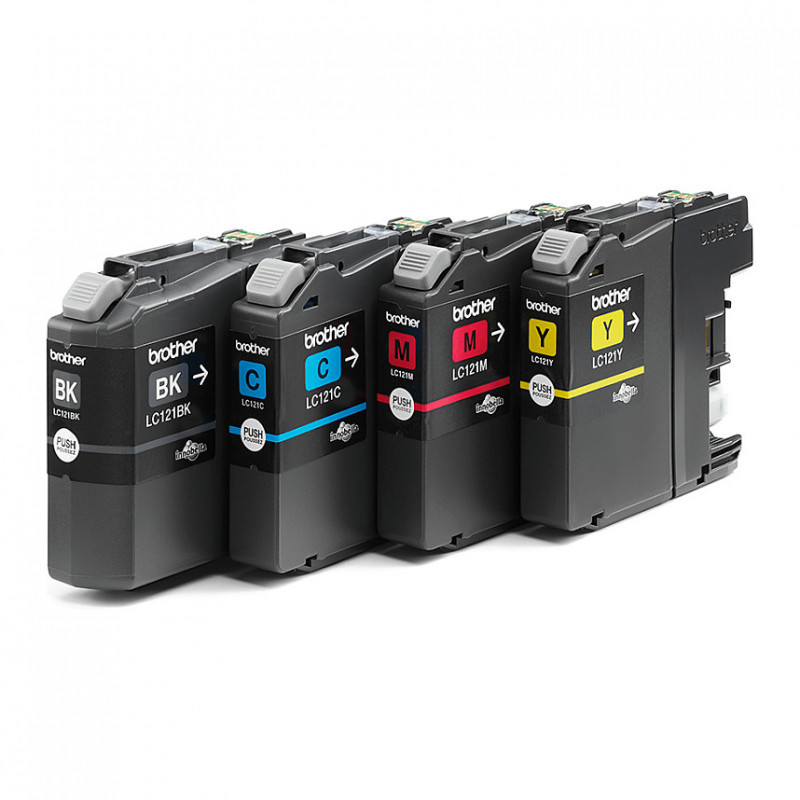 "Brother LC121VALBP. Supply type: Multi pack, Colour ink page yield: 300 pages, Printing colours: Black, Cyan, Magenta, Yellow, Quantity per pack: 4 pc(s), Black ink page yield: 300 pages"\n"When it’s time to replace your printer ink, you can rely on Brother’s LC121VALBP Multipack to ensure your printer remains in perfect working order and your printouts stay crystal clear. Though it can be tempting to buy less expensive, non-branded supplies, you should remember that refills and other cheap print cartridges can not only affect the quality of your prints but void your warranty and cause long-term damage to your printer.