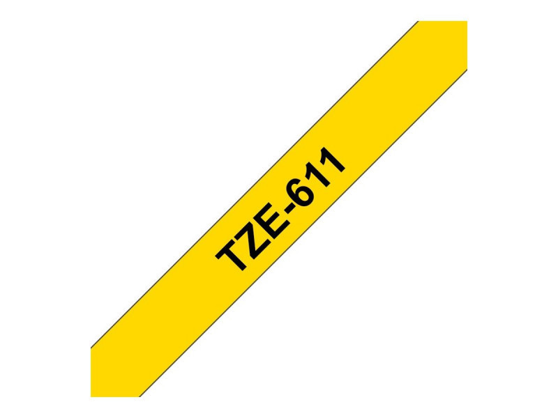 Brother | TZe-611 Laminated Tape | Black on Yellow | TZe | 8 m | 6 cm