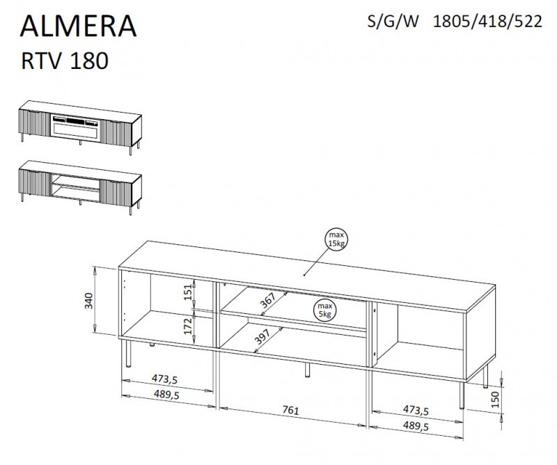 Cama ALMERA 5903815011696 TV stovas / baldas garso ir vaizdo aparatūrai 1 spintos