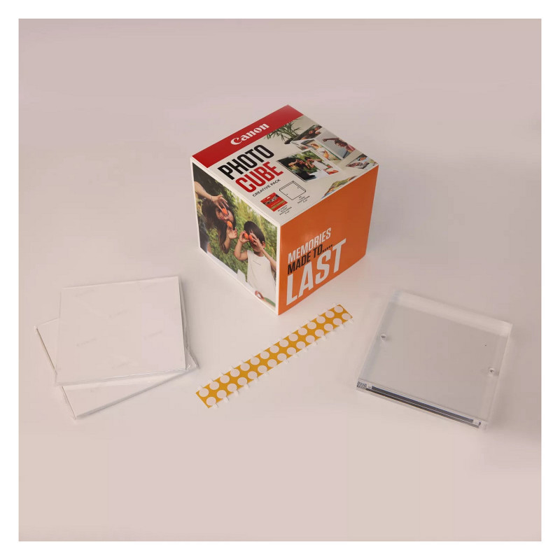 "Canon 2311B077. Finish type: Gloss, Paper size: 13x13 cm, Paper size (imperial): 5x5"". Quantity per pack: 40 pc(s)"\n"The Photo Cube and XLBoom Frame Creative Pack lets you store and display your favourite photos. Small enough to place around your home, the photo cube lets you store and display photos using the supplied double-sided tape to decorate the box. You can even give the box to family and friends as a gift. This creative pack includes an XLBoom Magnetic Frame 13 x 13 cm, which is a great way of decorating your home with your favourite photos. Perfect for social media printing, this creative pack lets you get started straight away with 40 13x13 cm sheets of square Photo Paper Plus Glossy II which allows you to get more creative with your printing."