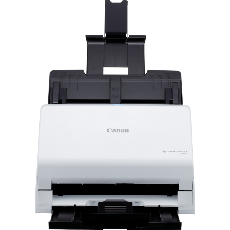 "Canon imageFORMULA R30. Maximum scan size: 216 x 356 mm, Optical scanning resolution: 600 x 600 DPI. Scanner type: ADF + Sheet-fed scanner, Product colour: White. Sensor type: CIS, Light source: RGB LED, Scan file formats: BMP, JPEG, PDF, PNG, PPTX, TIFF. Maximum ISO A-series paper size: A4, Scanning media types supported: Plastic Card, Media thickness (min): 0.04 mm. Power supply type: AC, Power consumption (typical): 10 W, Power consumption (off): 0.1 W"\n"Make scanning easier for everyone with a device designed for simplicity