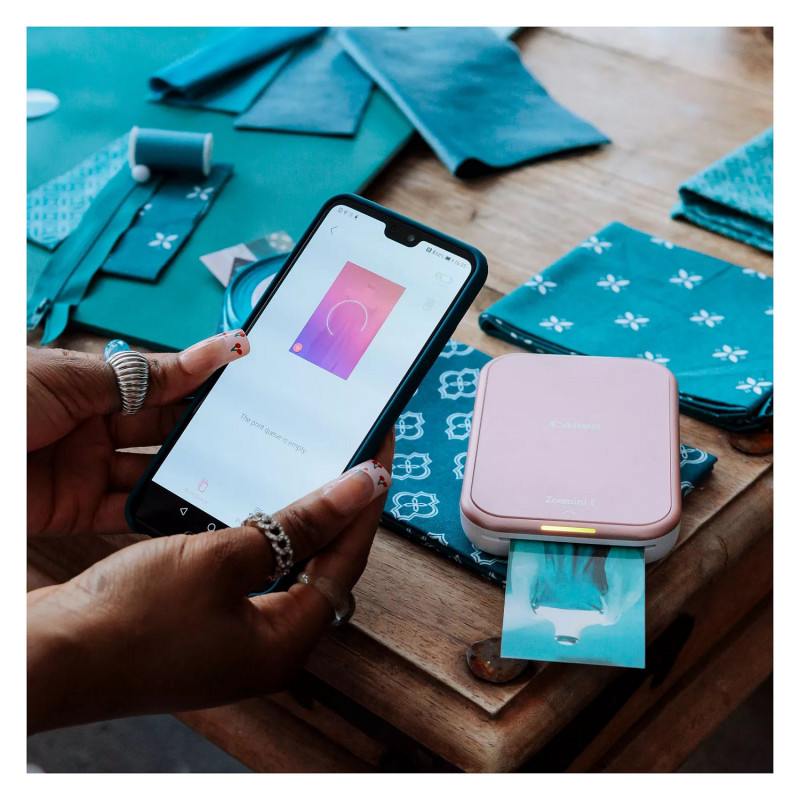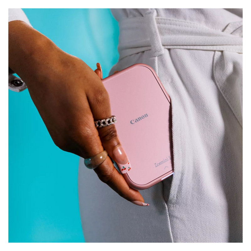 "Canon Zoemini 2. Print technology: ZINK (Zero ink), Maximum resolution: 313 x 500 DPI. Maximum print size: 2"" x 3"" (5x7.6 cm). Borderless printing. Bluetooth. Direct printing. Product colour: Pink"\n
