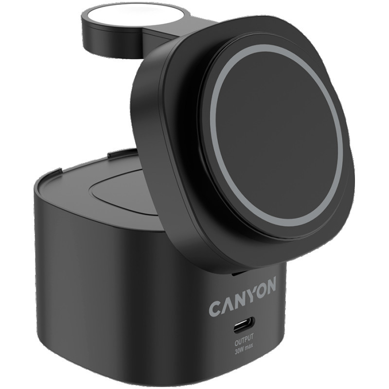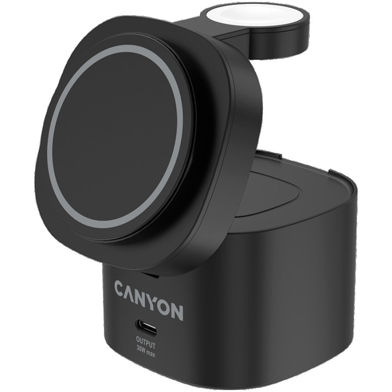 Canyon 4 in 1 Wireless Charging Stand, 30W max, Size: 70x70x70.3mm, weight: 414g, with 65W charger and 1M cable, black