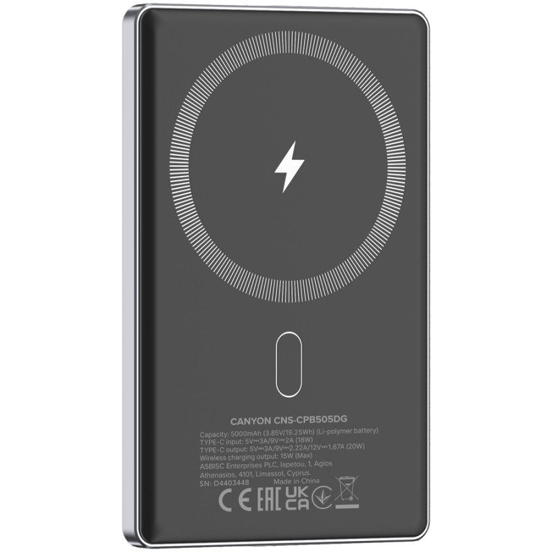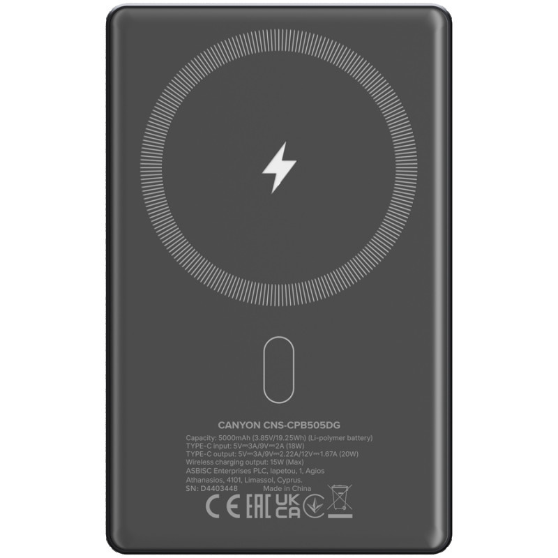 CANYON power bank OnPower 505 slim Magsafe 5000 mAh PD20W Dark Grey |