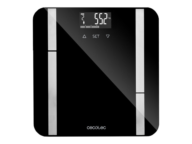 Cecotec | Smart Bathroom Scale | Surface Precision 9450 Full Healthy | Maximum weight (capacity) 180 kg | FourPrecision: high measurement precision thanks to its four sensors; TenBIA: Bioelectrical Impedance Analysis (BIA) measurement method with a complete body analysis, with precise measurement of 10 parameters: weight, body fat, body mass index, muscle mass, bone, body age, water, visceral fat, basal metabolism and fitness assessment; EasyUsability Multifunction: Auto power off and on when you step on the scale. Low battery indicator when batteries need replacing. Overload indicator when the weight exceeds the maximum; UserClever: Automatic identification of up to 10 users based on the records obtained