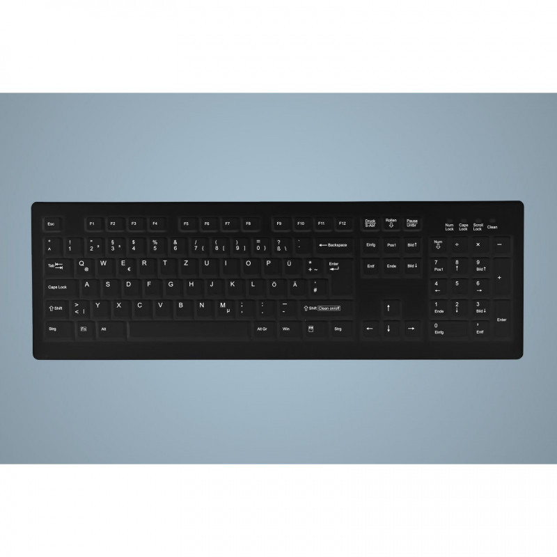 The AK-C8100 is a high quality, reliable PC keyboard. The purification and disinfection capacity makes it a perfect fit in hospitals and at practitioners, as well as office, administration and industrial environments. The silicone membrane protects the key field against ingress of dirt and fluids.