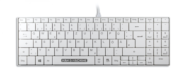 The CHERRY KC 200 MX immediately catches the eye with its elegant aluminum surface. The metal plate not only gives the mechanical keyboard an elegant look, but also makes it durable and robust. It is also equipped with white status LEDs in the CAPS LOCK, SCROLL LOCK and NUM LOCK keys. This enables you to see at a glance when one of these keys is activated. The slim dimensions and clean lines round the whole thing off nicely.