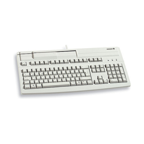 "CHERRY MultiBoard MX V2 G80-8000. Keyboard form factor: Full-size (100%). Keyboard style: Straight. Connectivity technology: Wired, Device interface: USB, Keyboard layout: QWERTZ, Keyboard number of keys: 105. Cable length: 2.2 m. Recommended usage: Universal. Product colour: Grey"\n"Freely programmable keyboard with built-in magnetic card reader"