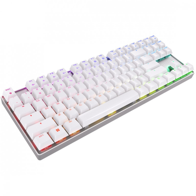 "CHERRY MX 8.2 TKL Wireless RGB. Keyboard form factor: Tenkeyless (80 - 87%). Keyboard style: Straight. Connectivity technology: Wired & Wireless, Device interface: USB + RF Wireless + Bluetooth, Keyboard key switch: Mechanical, Keyboard layout: QWERTZ, Keyboard number of keys: 88. Backlight type: RGB LED. Recommended usage: Gaming. Product colour: White"\n"CHERRY MX 8.2 TKL Wireless – the elegant gaming pro. Wireless and incredibly fast with a latency of less than 1 ms in gaming mode. The classy Tenkeyless design without numeric keypad in a solid aluminum housing with vibrant RGB lighting is the eye-catcher on every desktop. In addition to the classic gaming features, the tried-and-tested CHERRY MX switches, abrasion-resistant keycaps and a metal case for transport guarantee you a lasting gaming experience