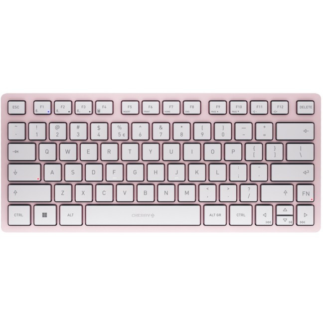"CHERRY KW 7100 MINI BT. Keyboard style: Straight. Connectivity technology: Wireless, Device interface: Bluetooth, Keyboard key switch: Scissor key switch, Keyboard layout: QWERTY, Keyboard number of keys: 78, Recommended usage: Universal. Product colour: Pink"\n"The CHERRY KW 7100 MINI BT is a compact Bluetooth® wireless keyboard that is perfect for use on the go. Ideal for both personal and professional purposes: The multi-device keyboard can be connected to up to three different devices at the same time. The carry case provided makes the keyboard easy to store and transport, meaning it is always ready for use.