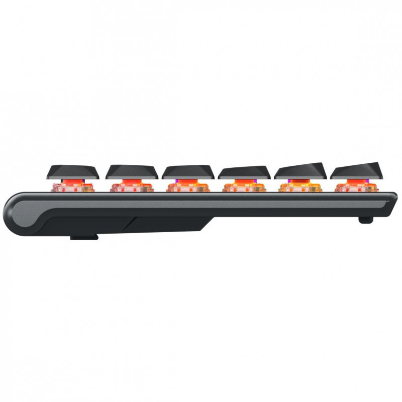 The mechanical gaming keyboard owes its low profile to the MX LOW PROFILE 2.0 switches. Despite its slim design, it has a robust aluminium housing that makes it extremely durable and stable. The slim shape also makes the low-profile mechanical keyboard comfortable to use during longer gaming sessions. "