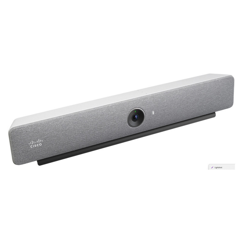 "Cisco CS-BAR-L-UK9. Product type: Group video conferencing system. Total megapixels: 12 MP. Sensor type: CMOS. HD type: 4K Ultra HD. Digital zoom: 5x. Ethernet LAN. Product colour: Grey"\n"The Cisco Room Bar BYOD in First Light (white) is a sleek, high-performance video conferencing bar designed specifically for small to medium-sized meeting and huddle rooms.