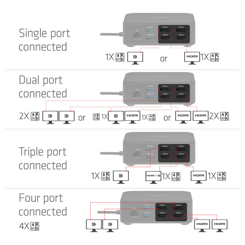 • QUAD DISPLAY DOCKING STATION: Working on any PC or MAC in 4K,