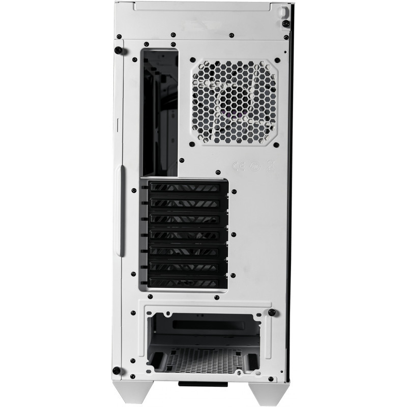 The tempered glass side panel is secured with pins for easy removal, facilitating quick access to the internals without the use of tools. An optional screw can be installed to further secure the tempered glass side panel.