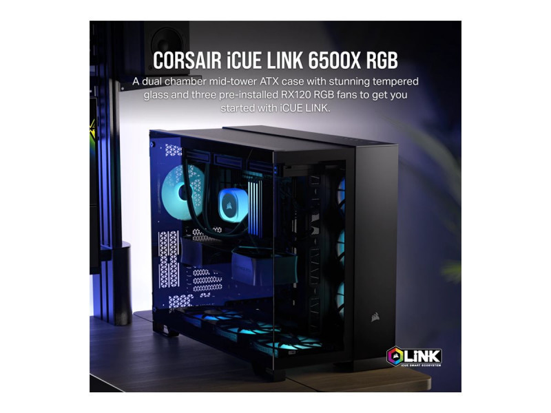Corsair Dual Chamber PC Case | iCUE LINK 6500X RGB | Black | Mid Tower | Power supply included No | ATX