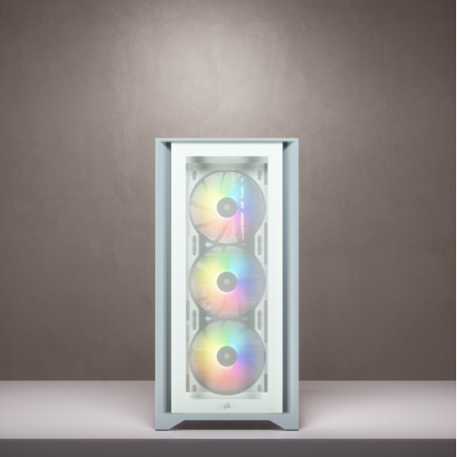 "Corsair iCUE 4000X RGB. Form factor: Midi Tower, Type: PC, Product colour: White. Power supply location: Bottom. Front fans installed: 3x 120 mm, Front fans diameters supported: 120,140 mm, Rear fans diameters supported: 120 mm. Supported HDD sizes: 3.5"", SSD form factor: 2.5"". Width: 230 mm, Depth: 453 mm, Height: 466 mm"\n"The CORSAIR iCUE 4000X RGB is a distinctive and customizable tempered glass mid-tower ATX case with easy cable management and exceptional cooling, with three included CORSAIR AirGuide RGB fans.
