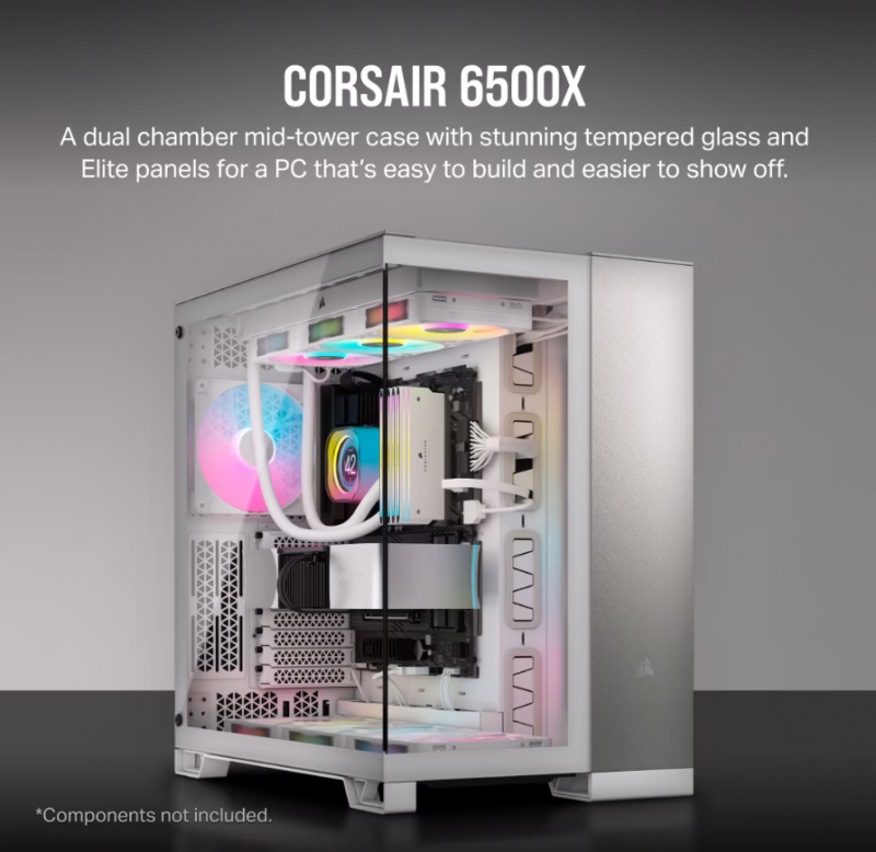 Corsair PC Case | 6500X Dual Chamber | White/Satin Gray Aluminum | Mid-Tower | Power supply included No