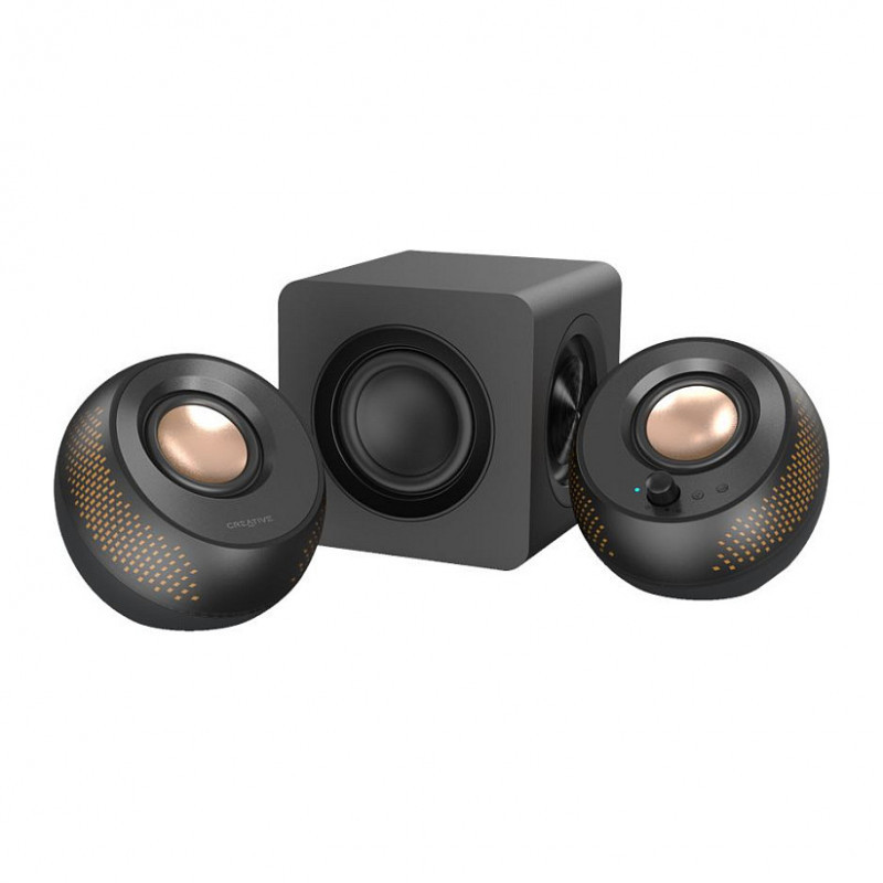 "Creative Labs Creative Pebble X Plus. Audio output channels: 2.1 channels, RMS rated power: 30 W, Recommended usage: Universal. Signal-to-Noise Ratio (SNR): 93 dB. Subwoofer type: Passive subwoofer, Subwoofer RMS power: 30 W, Subwoofer driver diameter (imperial): 8.89 cm (3.5""). Power source: USB. Width: 139.5 mm, Depth: 132 mm, Height: 136 mm"\n"2.1 USB-C Speakers Customizable RGB Lighting