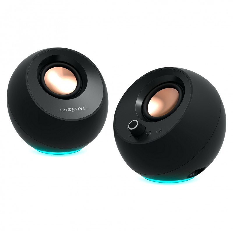 "Creative Labs Creative Pebble Pro Black"\n"Now with customizable RGB lighting! The Creative Pebble Pro speakers let you pick from a wide spectrums of colors and three lighting effects via a simple plug-and-play setup.