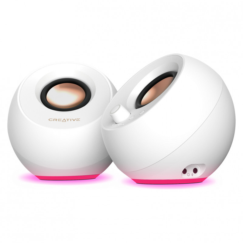 "Creative Labs Creative Pebble Pro White"\n"Now with customizable RGB lighting! The Creative Pebble Pro speakers let you pick from a wide spectrums of colors and three lighting effects via a simple plug-and-play setup.