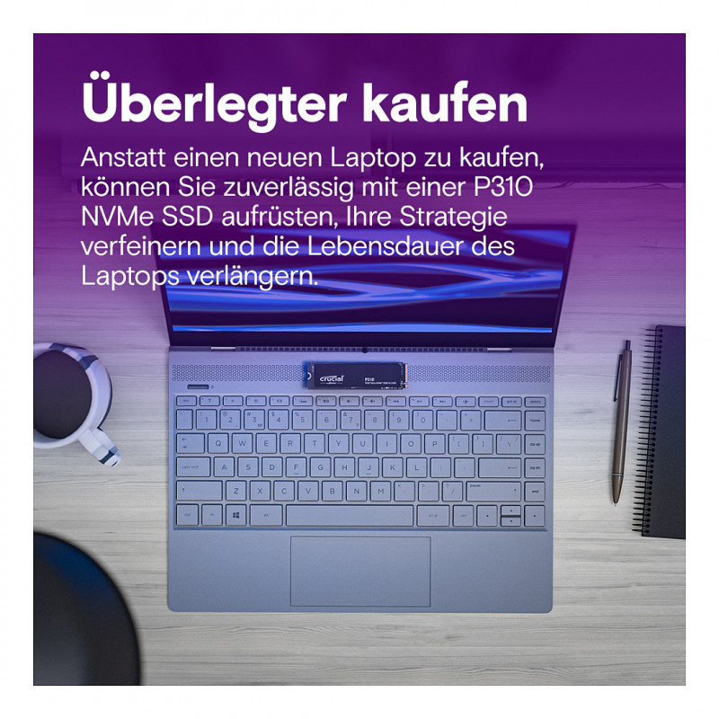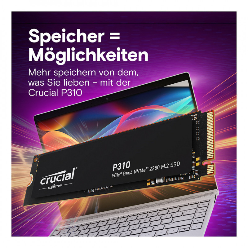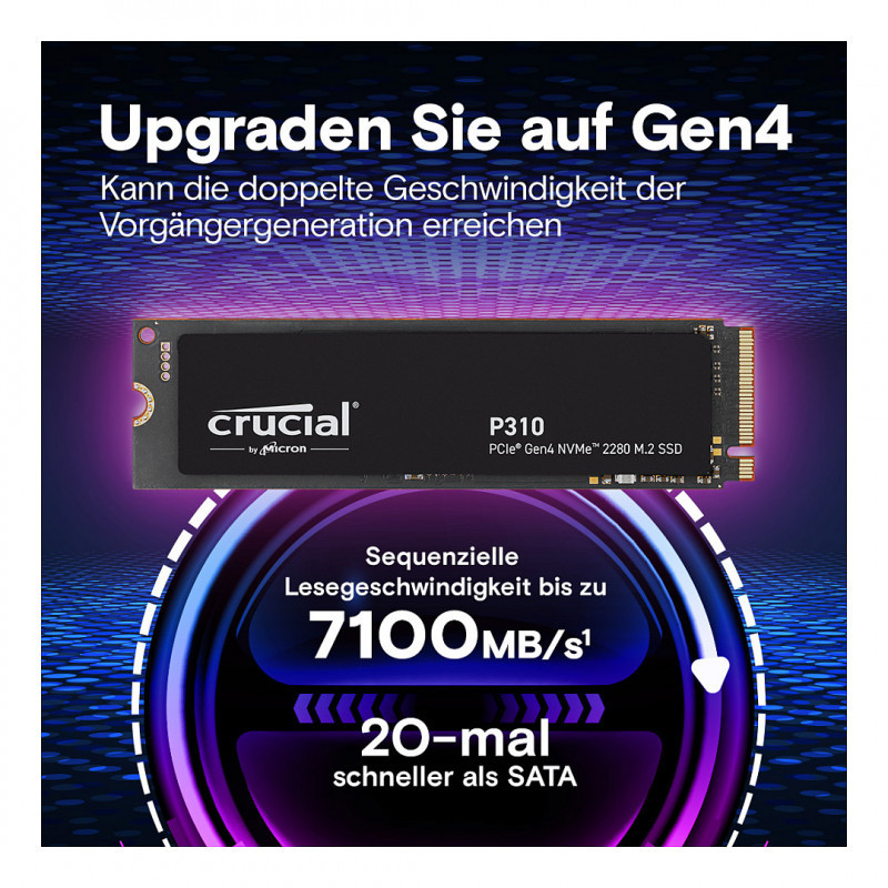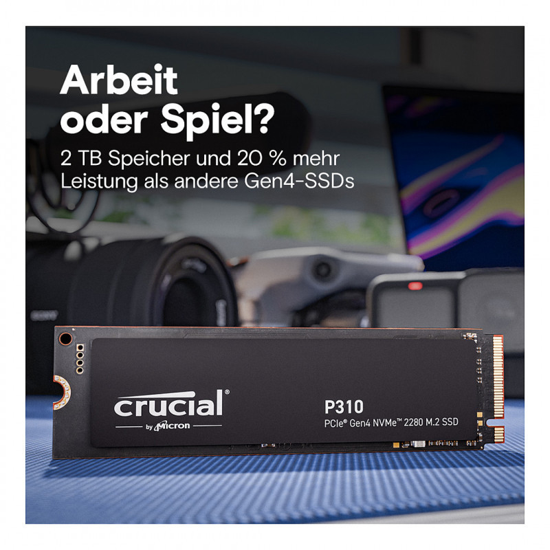 "Crucial P310. SSD capacity: 4 TB, SSD form factor: M.2, Read speed: 7100 MB/s, Write speed: 6000 MB/s, Component for: PC/Laptop"\n"Game on. Limit off.